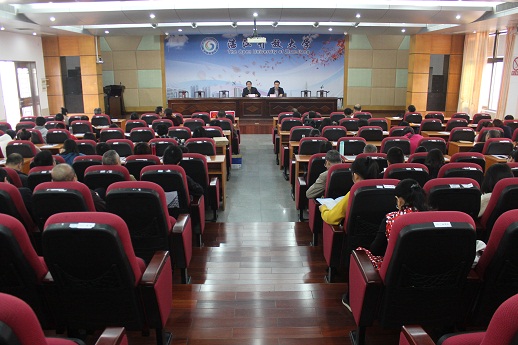 12月25日下午,按照市委统一工作部署,湛江开放大学在学校11楼多功能报告厅召开2018年领导班子和领导干部年度考核民主测评会,市教育局副局长夏开晓、市委组织部电教中心主任陈升华出席会议,学校干部职工共计86人参加。