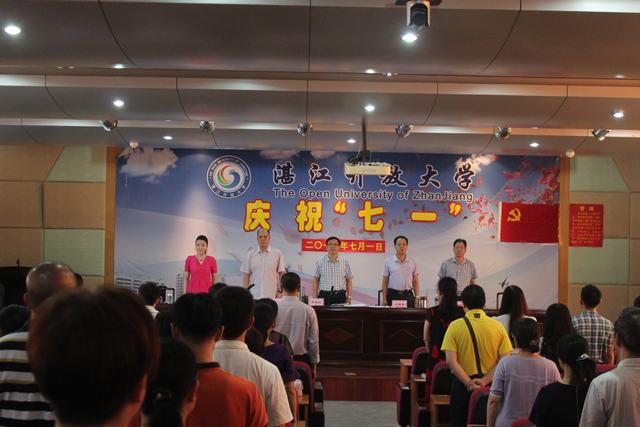 王康生副校长宣读了《关于批准江文创等为中国共产党预备党员的决定》。尤祖国副校长带领36名新入党党员面对悬挂主席台上的党旗宣誓,参会的全体老党员重温了誓词。大会还表彰了第一和第五两个先进党支部、4名优秀党务工作者以及10名优秀共产党员。