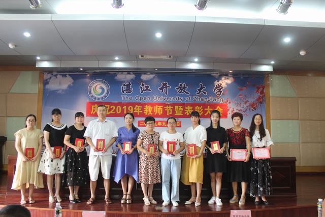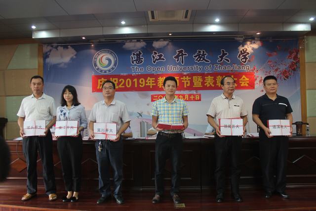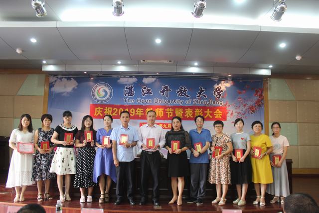9月10日上午,湛江开放大学在校本部11楼学术报告厅隆重举行全市开大系统教师节庆祝暨表彰大会。广东开放大学规划与体系建设处李光先处长,湛江开放大学党委副书记熊焱高等校领导,市开大全体教职工及吴川、廉江、遂溪、雷州、徐闻、坡头等各县(市)开大、分校领导、优秀教师代表等参加了大会?;嵋橛山罹布臀榧侵鞒郑茸婀毙3ば寥锌笙低秤判阈A斓肌⒂判憬淌?、优秀班主任、先进教育工作者和2018~2019年度教学科研成果奖励表彰决定,共有107名获奖教职工受到表彰。