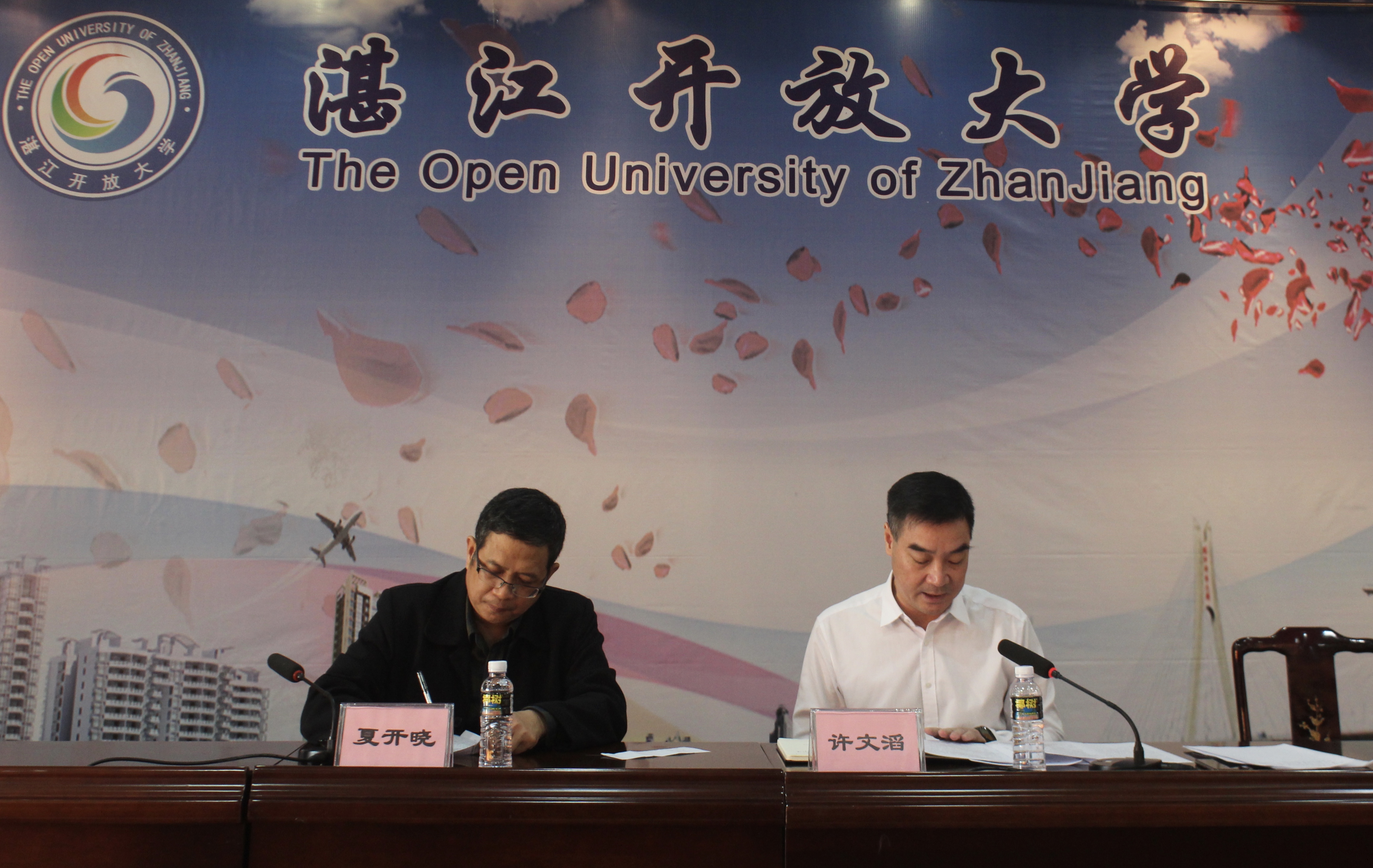12月26日上午,按照市委统一工作部署,湛江开放大学在学校11楼多功能报告厅召开2019年领导班子年度考核民主测评会,市教育局副局长夏开晓、市委组织部干部三科李论、市教育工委钟宇靖出席会议,学校干部职工共计95人参加?;嵋橛墒薪逃指本殖は目鞒?。
