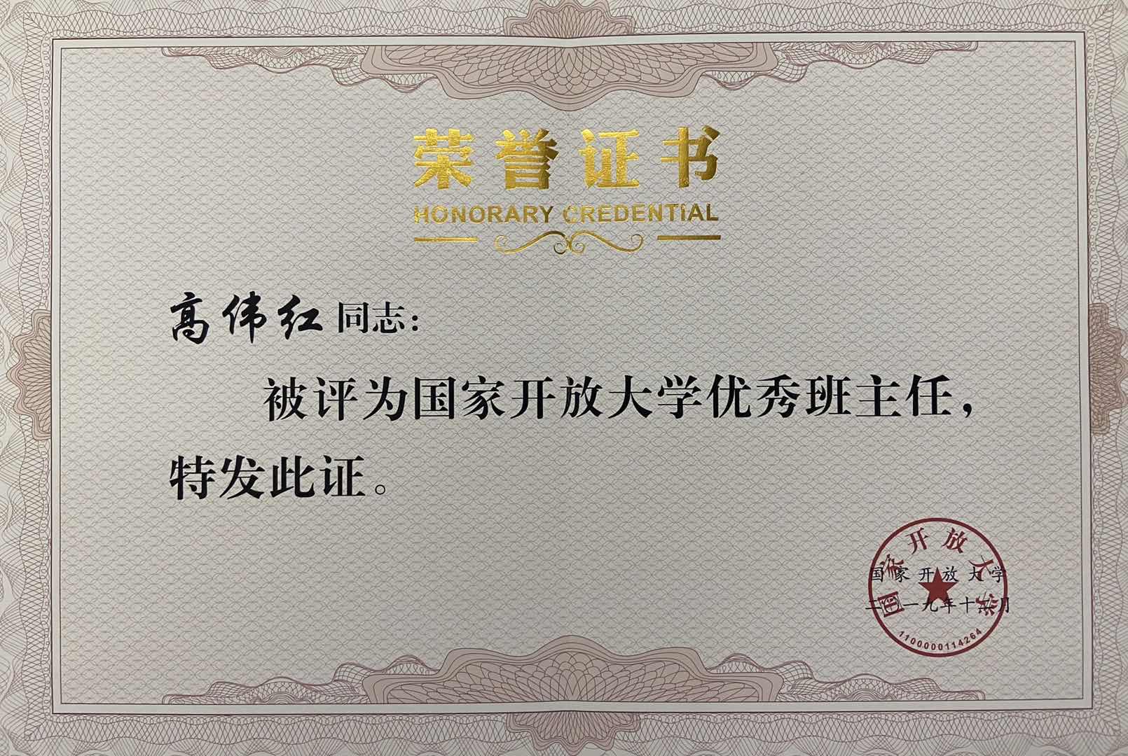我校高伟红同志荣获 “国家开放大学优秀班主任”称号