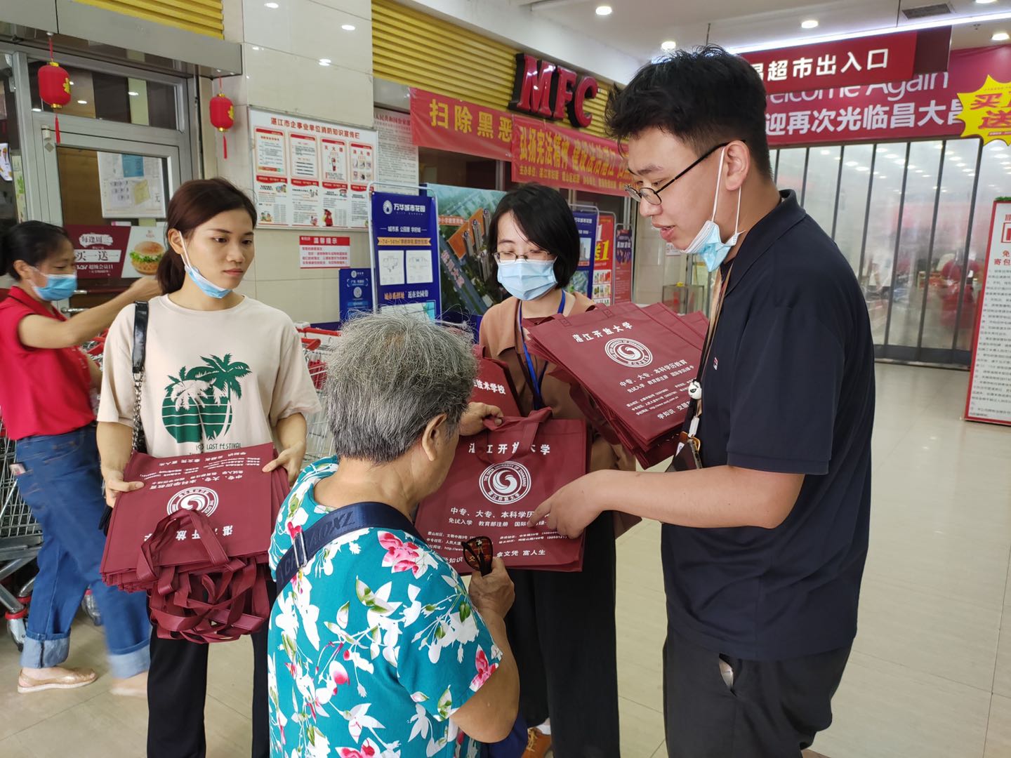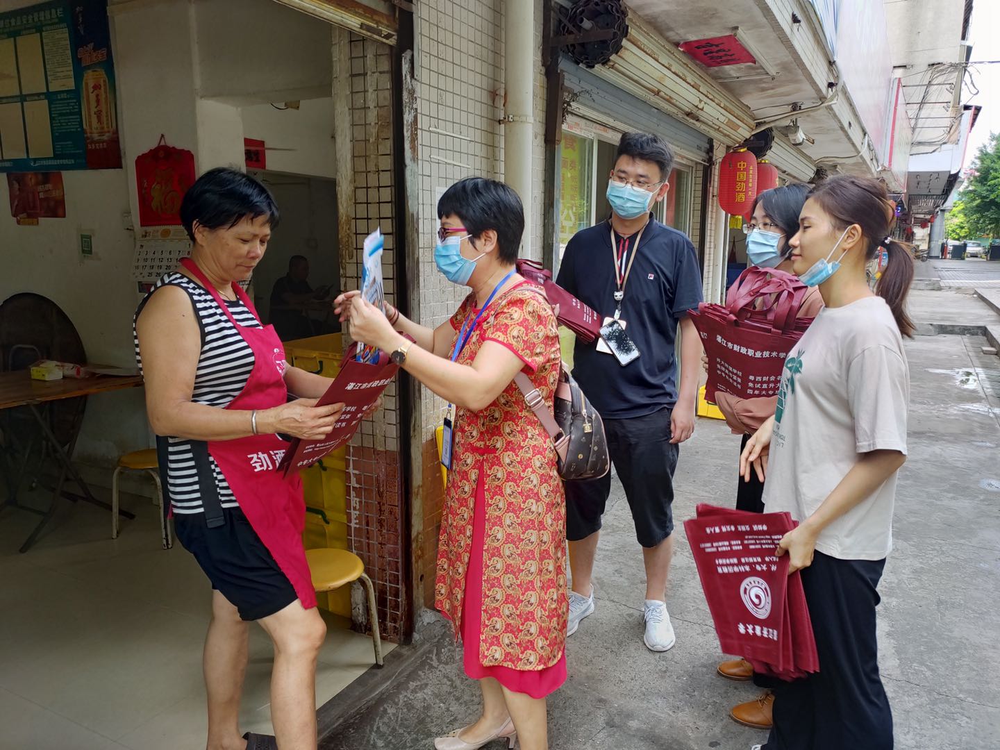 在宣传工作中,熊焱高副书记与高伟红科长向相关街道办负责人进行社区教育合作宣传,致力将湛江开放大学的师资、课程等教育教学资源延伸到社区,进一步推进社区教育的建设,同时向街道办负责人介绍学校办学特色与招生政策,并沿街向行人及商铺人员积极介绍学校情况与特色专业,进行招生宣传。大家重点向街道、社区年轻人发放招生简章,并耐心为社区老年人宣传学校办学特色,为需要报名的市民提供报名服务。