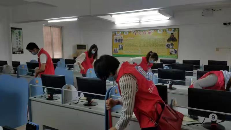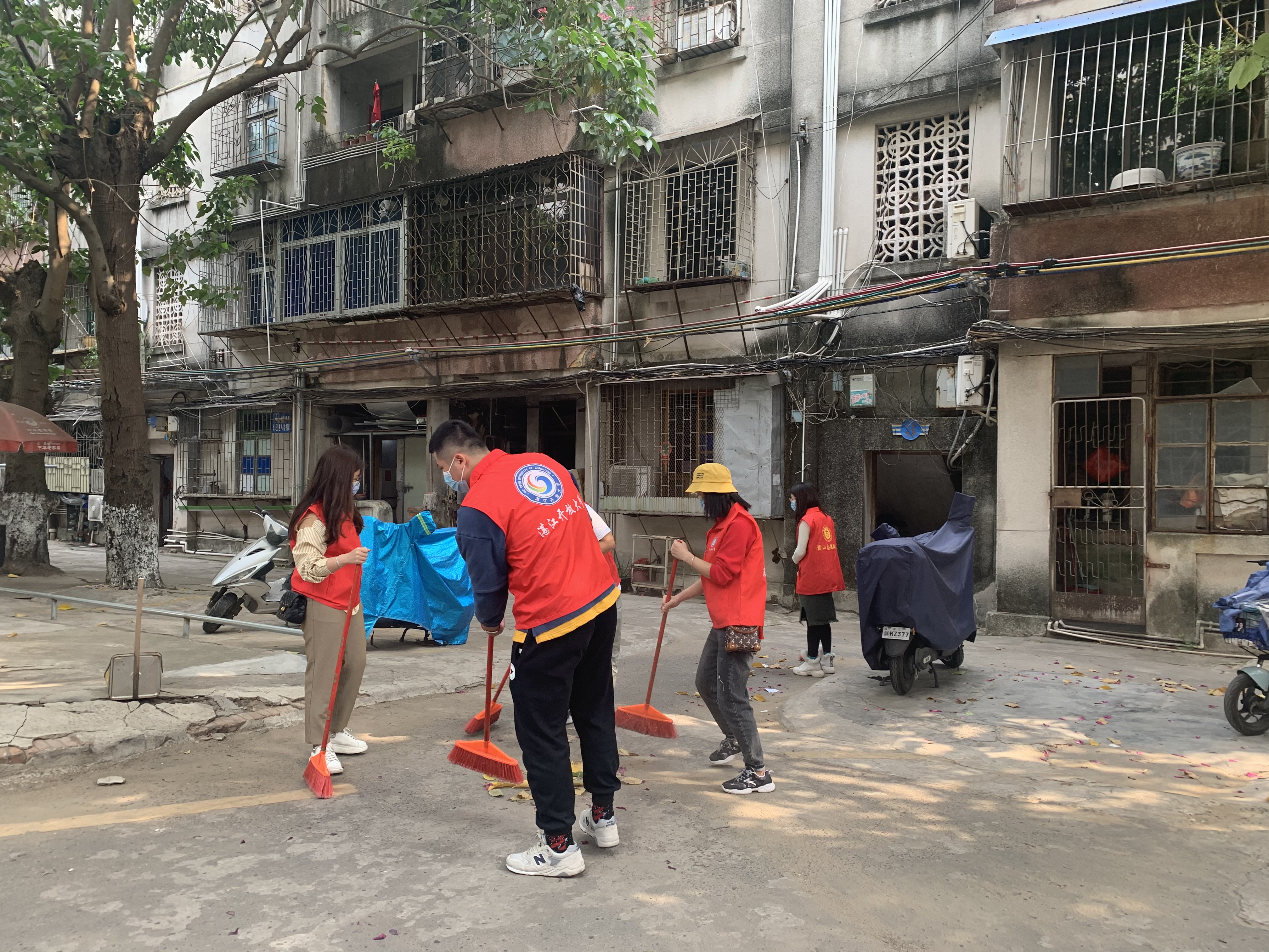 (我校教工团支部青年教师在社区开展志愿清扫服务活动)