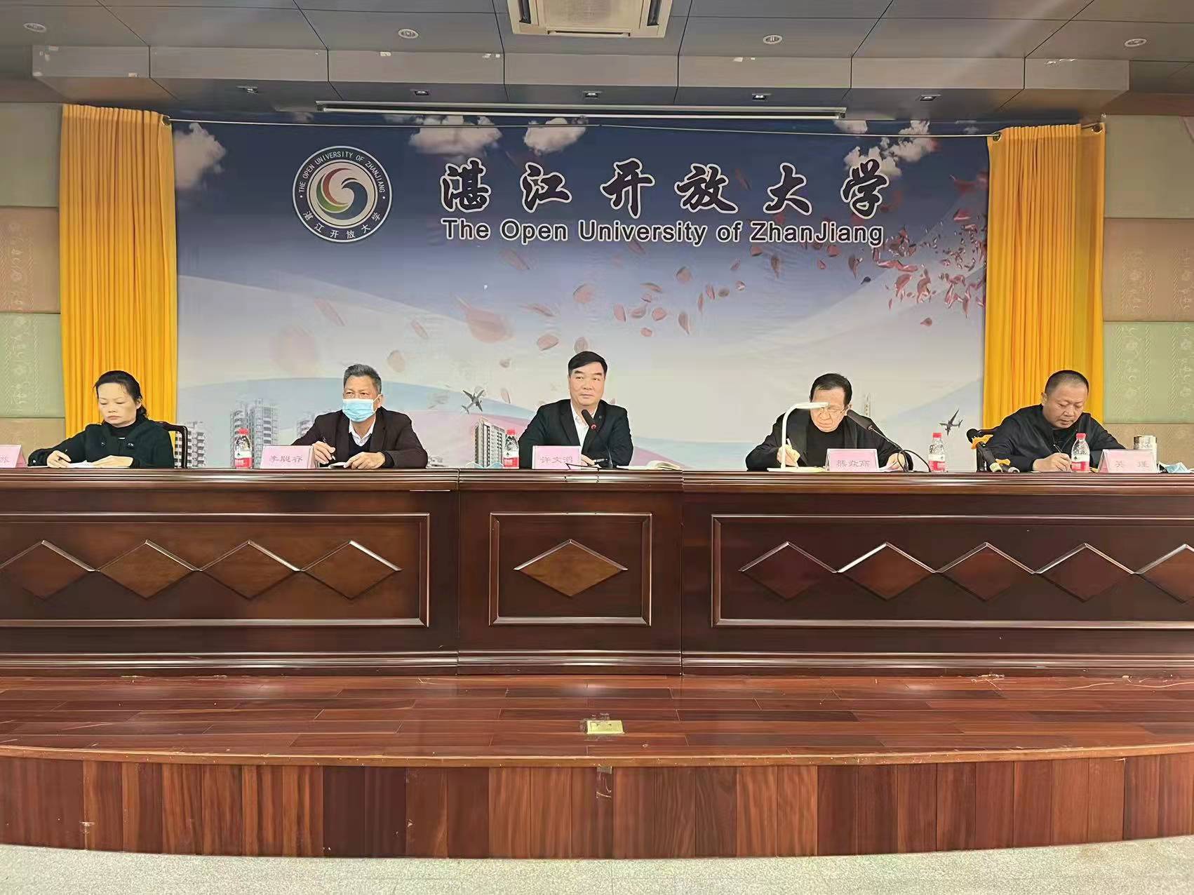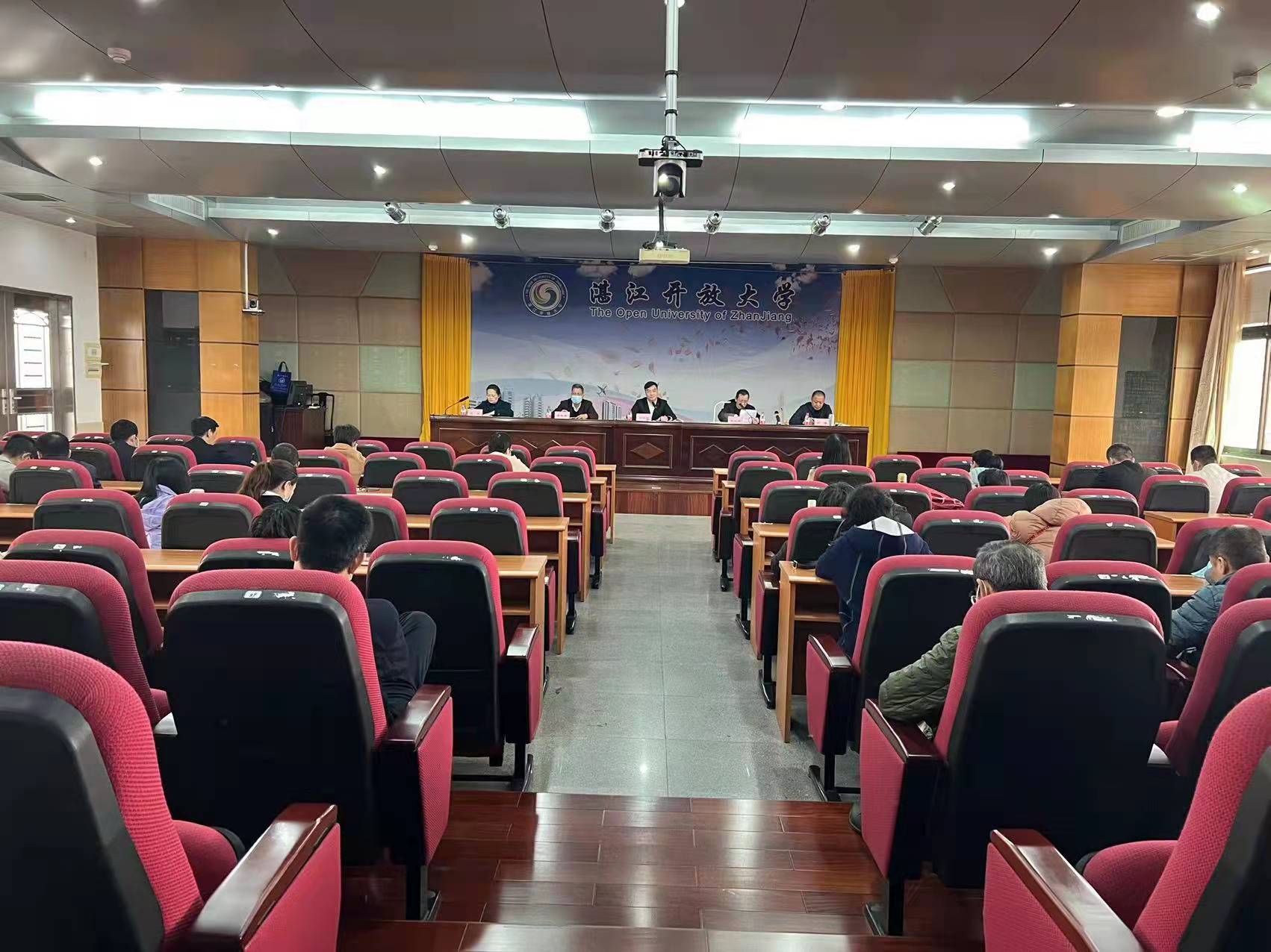 1月11日,湛江开放大学在校本部11楼学术报告厅召开教职工大会?;嵋樽芙崃吮狙谘5母飨罟ぷ?,并对学校寒假期间疫情防控和安全生产工作进行部署安排。