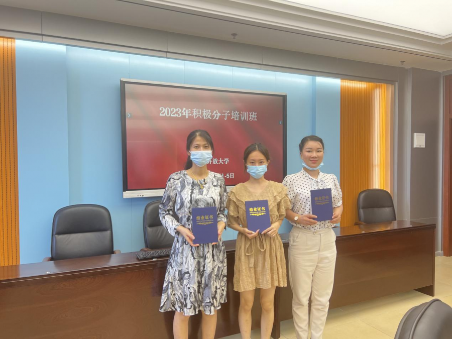 为切实做好入党积极分子的培养教育工作,提高入党积极分子的思想政治素质,充实党员后备队伍。6月1日至5日,湛江开放大学举办2023年入党积极分子培训班,3名入党积极分子余珺至、陈小妹、冯洪芳参加了培训。
