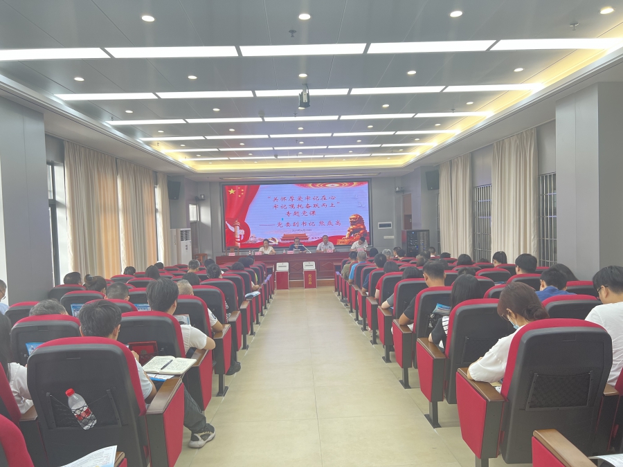 党委副书记熊焱高同志讲授“关怀厚爱牢记在心 牢记嘱托奋跃而上”专题党课。他要求,要深入学习贯彻习近平新时代中国特色社会主义思想和党的二十大精神,坚定以习近平总书记视察广东重要讲话、重要指示精神为统揽,为办好让人民满意的开放教育再聚力量、再鼓干劲、再立新功,以实际行动把习近平总书记的殷殷嘱托和深切关怀转化为推动湛江跨越式、高质量发展的实效。
