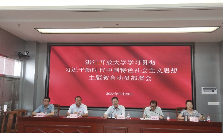 9月20日上午,湛江开放大学学习贯彻习近平新时代中国特色社会主义思想主题教育动员部署会召开,深入学习贯彻习近平总书记关于主题教育系列重要讲话和重要指示批示精神,认真落实党中央、省委以及市委关于开展主题教育的部署要求。校党委书记、校长黄华兵同志对我??怪魈饨逃卸辈渴?,校党委副书记熊焱高同志主持会议。