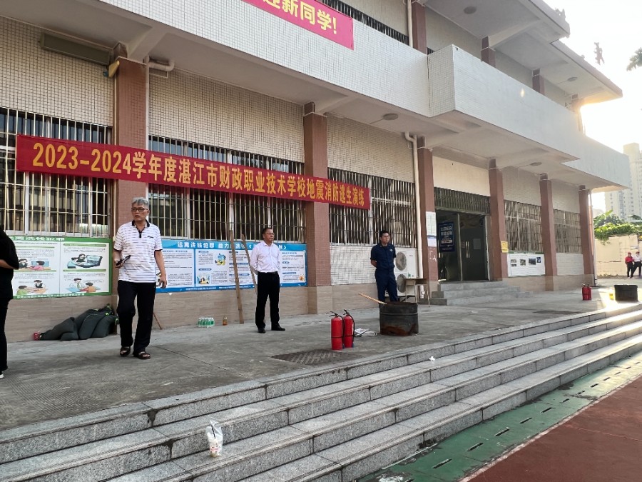 为进一步加强学生的消防安全知识,提高师生的安全意识和自救自护能力,切实保障师生在突发事件来临时的生命安全。我校附属中专(湛江市财政职业技术学校)于10月26日下午,在主校区操场上举行了地震消防安全应急疏散演练活动,湛江市财政职业技术学校校长吴瑾同志、副校长李灿坤同志到现场指导本次演练活动。
