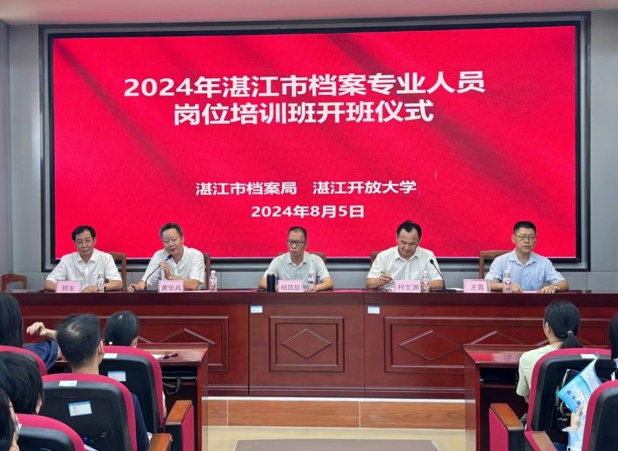 8月5日上午,湛江市档案专业人员岗位培训班开班仪式在湛江开放大学主校区顺利举行。湛江市档案馆馆长杨凯航,湛江开放大学党委书记、校长黄华兵,湛江开放大学党委副书记、纪委书记柯文渊和相关科室负责同志,以及近60名档案专业人员参加了此次开班仪式。