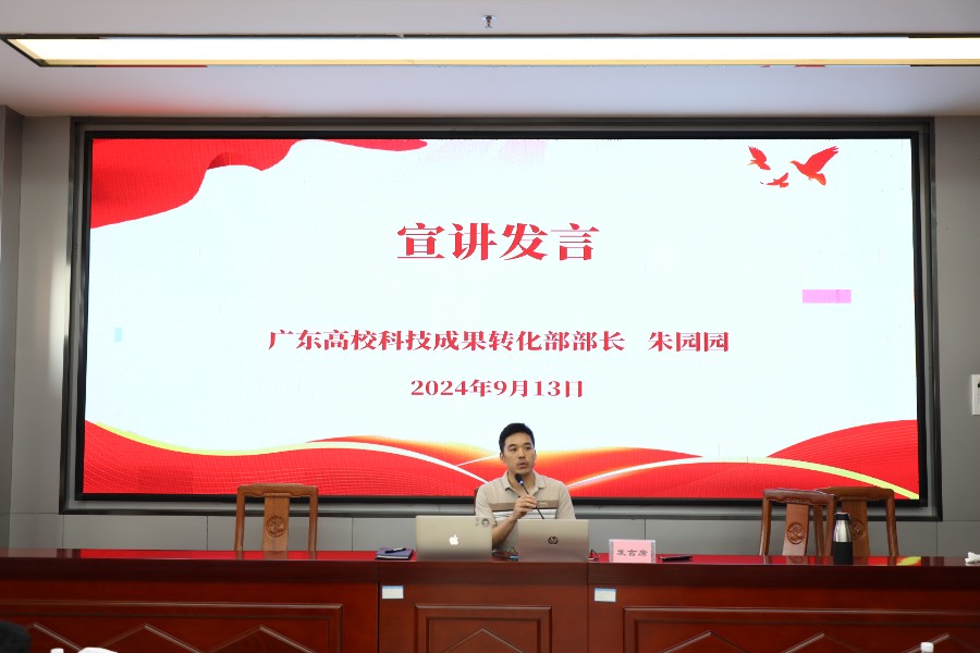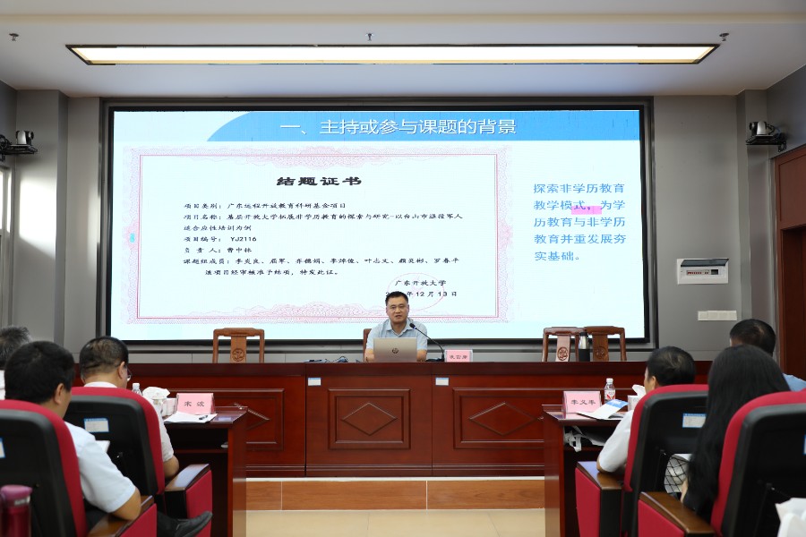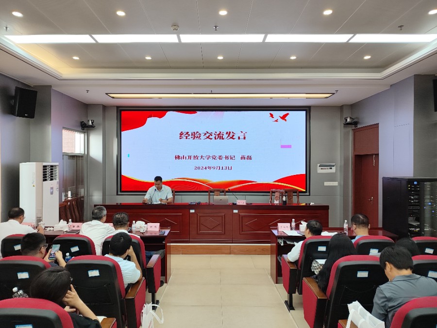 会议第二大部分是交流发言环节。佛山开放大学党委书记苗磊率先进行经验交流发言,分享了佛山开放大学在教育教学改革中的宝贵经验和创新举措,为其他学校提供了有益的借鉴。台山开放大学副校长曹中林以“以科研为引领为学校转型发展保驾护航”为题进行发言,强调了科研在学校转型发展中的关键作用,展示了台山开放大学在科研引领方面的积极探索。广东高??萍汲晒行闹煸苍餐疽沧髁司实男卜⒀?,为高校科技成果转化提供了新的方向和思路。