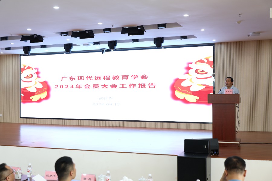 广东开放大学教务部副部长、广东现代远程教育学会秘书长曾祥跃作广东现代远程教育学会年度工作报告。他主要介绍了学会基本情况,并将学会近期工作进行汇报,同时提出了学会下一步工作计划及发展构想,为学会工作开展提供了目标与方向。
