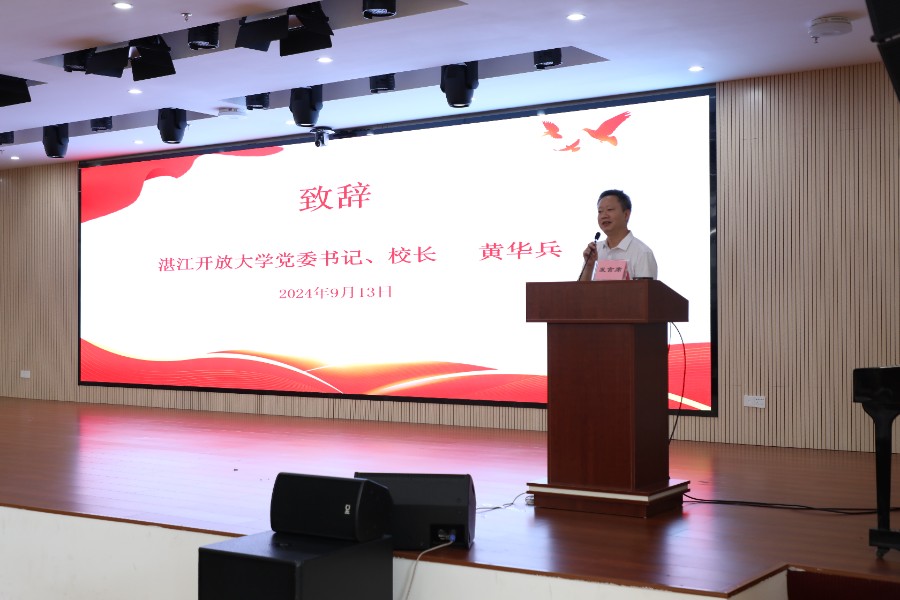 2024年9月13日,广东开放大学体系科研工作会暨广东现代远程教育学会会员大会在湛江开放大学召开。广东开放大学党委委员、副校长、广东现代远程教育学会会长宋波,湛江市教育局党组成员、副局长、二级调研员胡德海,我校党委书记、校长黄华兵等校领导,广东开放大学部领导及各市县开放大学分管科研、人事工作的领导共150多人参加会议,会议由广东开放大学科学技术部部长陈东英同志主持。