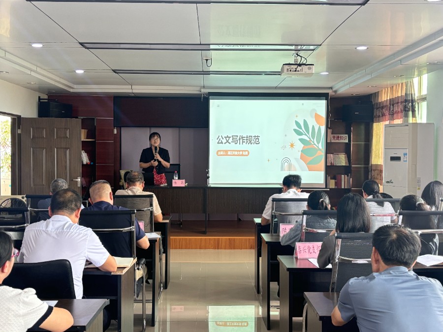 10月16日上午,我校团委书记陆茜老师与社区教育教研室人员前往赤坎区调顺街道办事处,为街道基层干部开展公文写作规范培训。