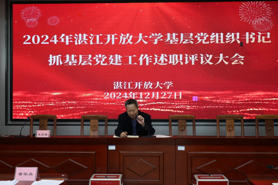 12月27日下午,学校党委在主校区8楼阶梯教室召开2024年湛江开放大学基层党组织书记抓基层党建工作述职评议大会。学校党委书记黄华兵等校领导及全体教职工出席会议?;嵋橛裳5澄笔榧切莒透咧鞒帧?/span>