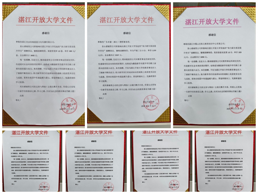 此次“助力新生报读提升学历”捐赠活动,是爱心企业、社会人士与湛江开放大学携手共进的成果,也是社会各界对教育事业关心支持的生动体现。相信在大家的共同努力下,会有更多学子能够跨越经济障碍,实现自己的学历提升梦想,在知识的海洋中扬帆起航,驶向充满希望的未来!