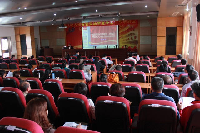 根据我校全年政治理论学习计划安排,为配合好开展党的群众路线教育实践活动,11月26日,学校在11楼召开专题学习会,校领导班子及全体教职工参加了学习。学校党委副书记饶腊年同志作了题为"加强党的作风建设,始终保持党同人民群众的血肉联系"的专题报告,他从60多年来加强党同人民群众血肉联系的经验、当前形势下加强党同人民群众血肉联系面临的新考验、以加强党同人民群众血肉联系为重点加强党的作风建设、当前学校作风建设的状况和改进等四个部分进行了讲述,提高了教职工的思想认识。