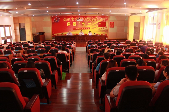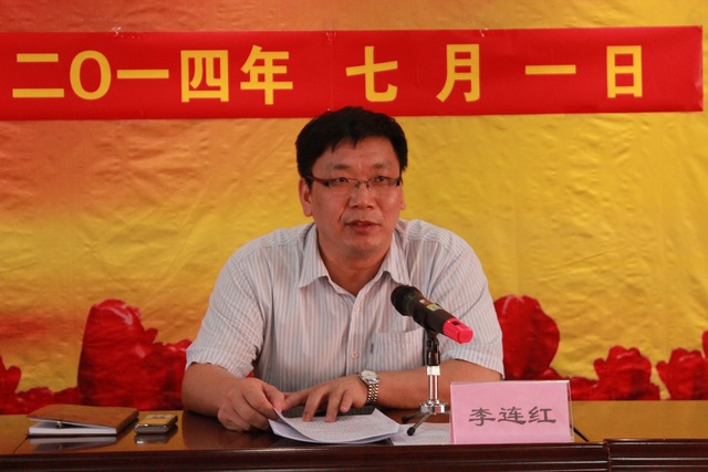 李连红校长在大会上讲话。他代表学校党委向新党员表示热烈的祝贺,向辛勤奋斗在学校各个岗位上的全体党员致以节日的问候和崇高的敬意。李校长回顾了中国共产党成立93年来的光辉历程,对一年来我校党建等主要工作作了简要回顾,他要求全体党员团结在党中央的周围,深入贯彻落实十八大和十八届三中全会精神,努力践行党的群众路线,再接再厉,真抓实干,推动电大教育事业全面发展。