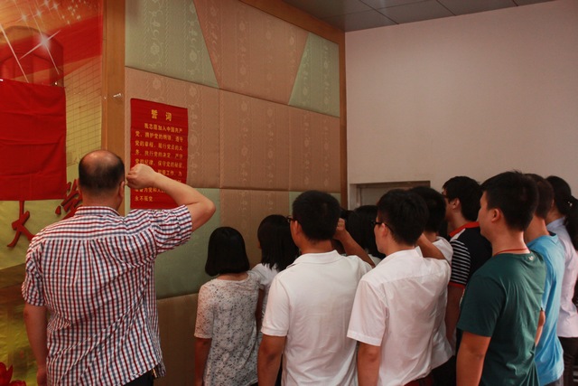 "我志愿加入中国共产党……"7月1日下午,在我校纪念中国共产党成立93周年暨新党员宣誓大会上,面对悬挂在11楼多功能厅主席台上鲜艳的党旗,24名新党员举起右手,庄严宣誓。