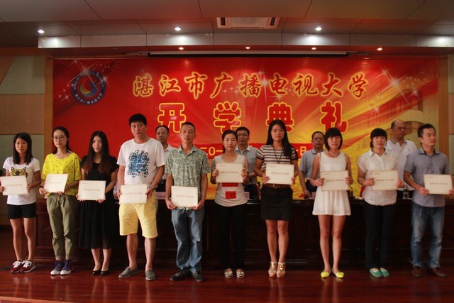 学校党委书记、校长李连红在致词中对新同学的到来表示热烈欢迎,祝贺大家正式成为教育部直属高校--国家开放大学(原中央电大)的大学生。他介绍说,湛江电大2014年秋季开放教育录取1152人,录取人数最多的专业是行政管理、会计学、学前教育、工商管理和土木工程等。李校长对新生们的学习提出了具体的要求,勉励大家学好本领,成为"下得去、用得上、信得过"的实用人才,服务湛江地方经济社会发展。